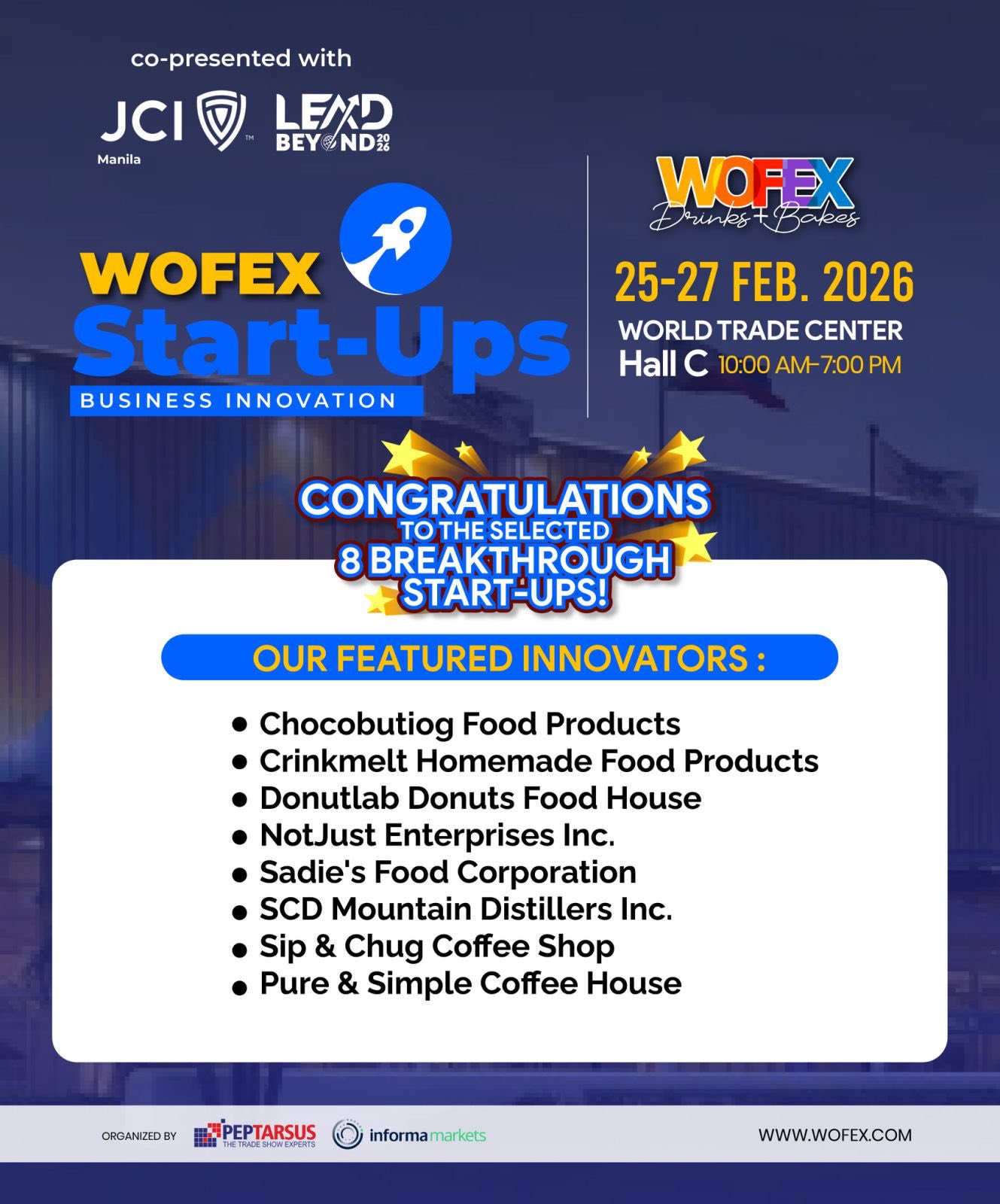 Congratulations to the newest batch of food entrepreneurs selected for WOFEX Start-Ups! This year, we have partnered with JCI Manila to continue the initiative we started last August.